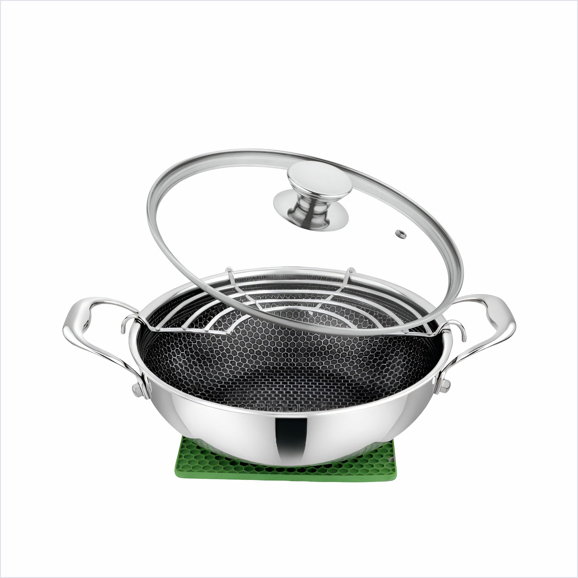 Tri-ply Hexa Cube Kadhai With Lid With Honeycomb Surface