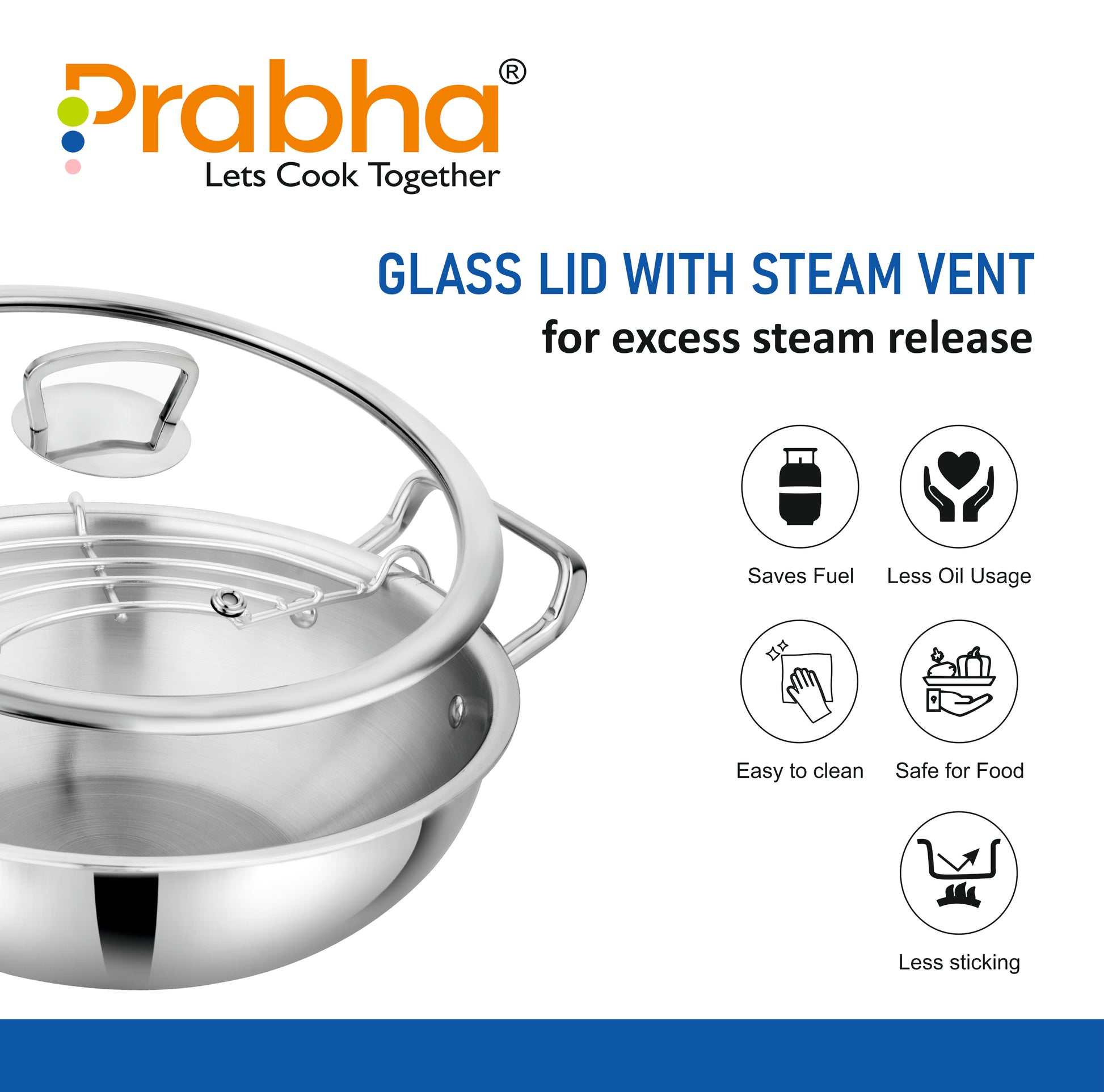 Elante Tri-Ply Kadhai & Steamer With Glass Lid