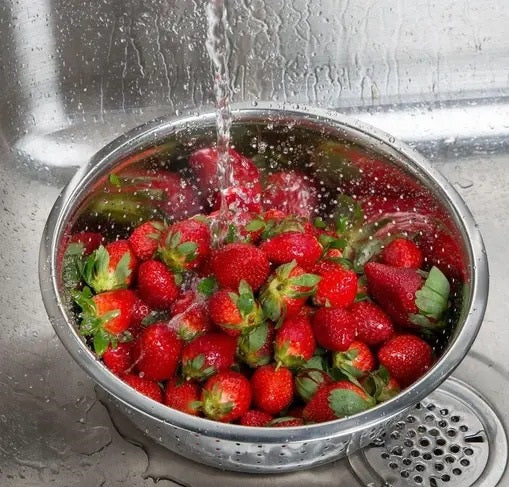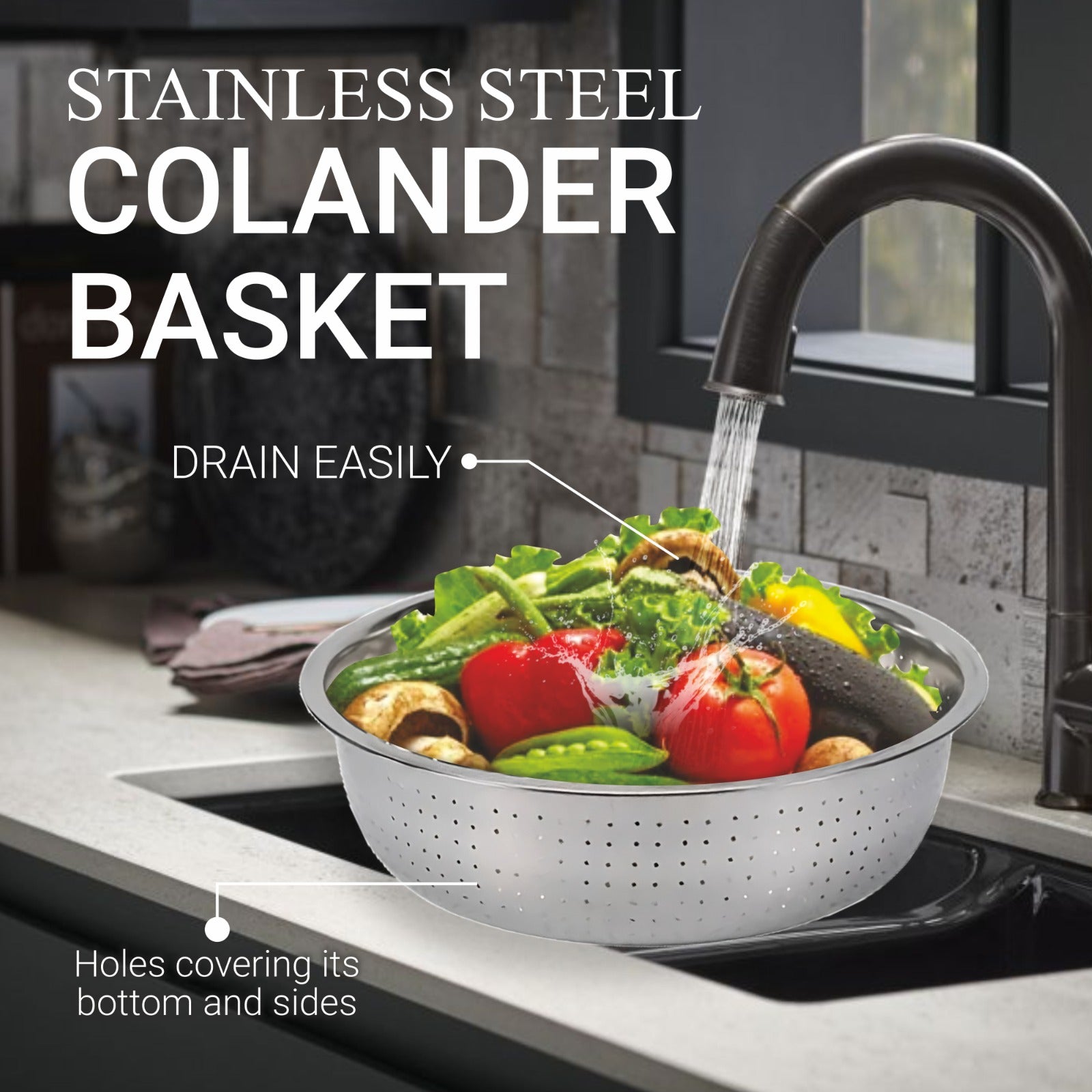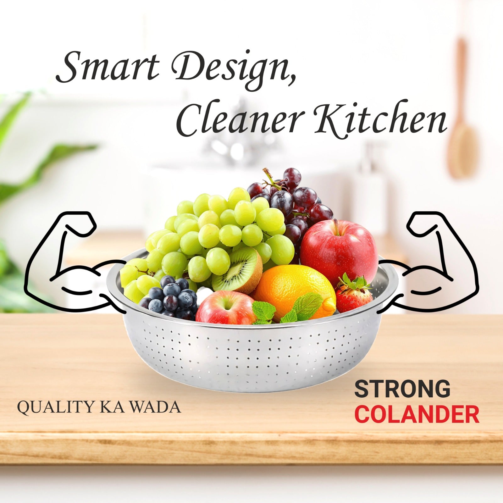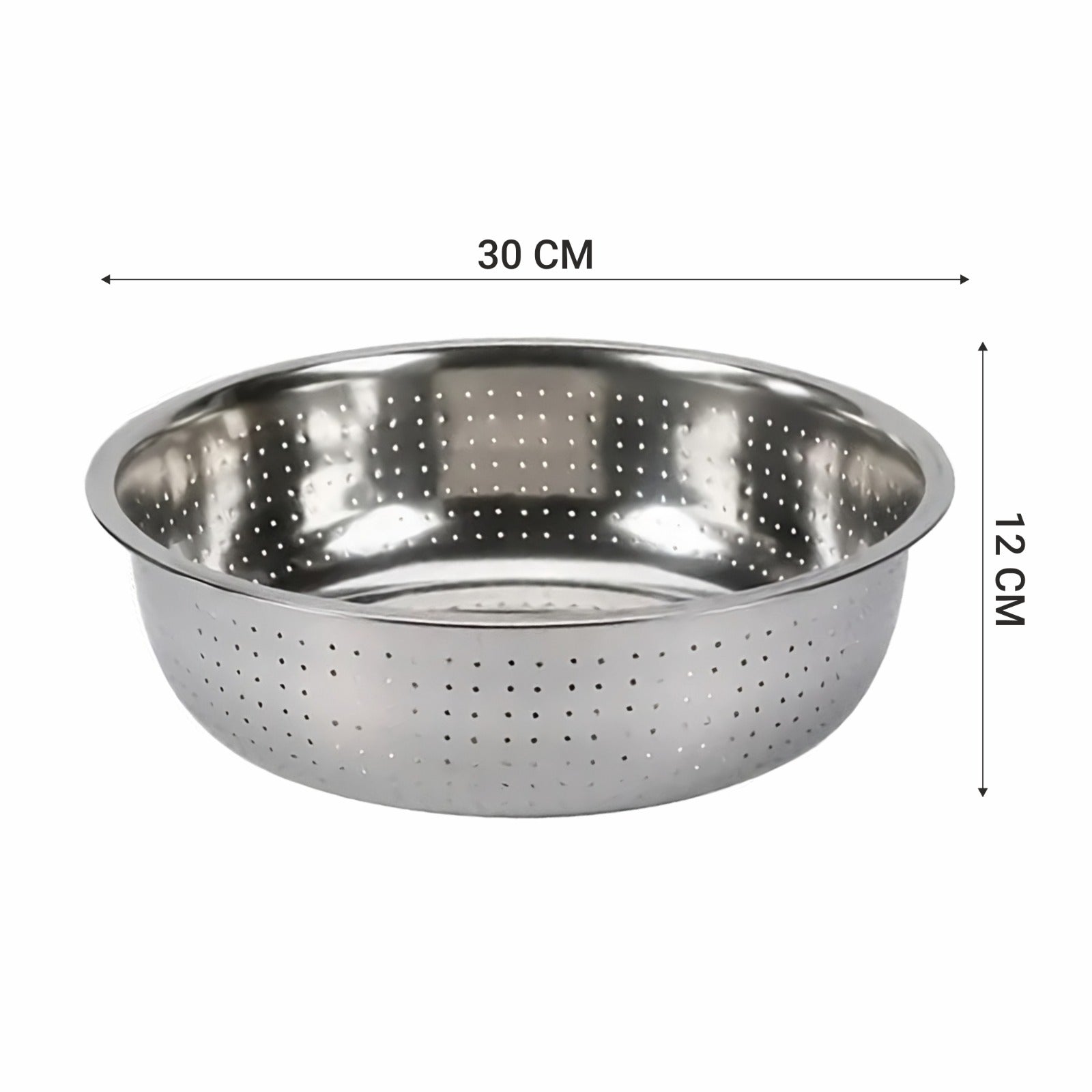 Prabha Colander Stainless Steel Strainer Sieves 30cm | Kitchen Strainer with Handle-Essential Kitchen | Colanders Bowl, Basket | Colander for Rice Straining Washing Fruits, Vegetables