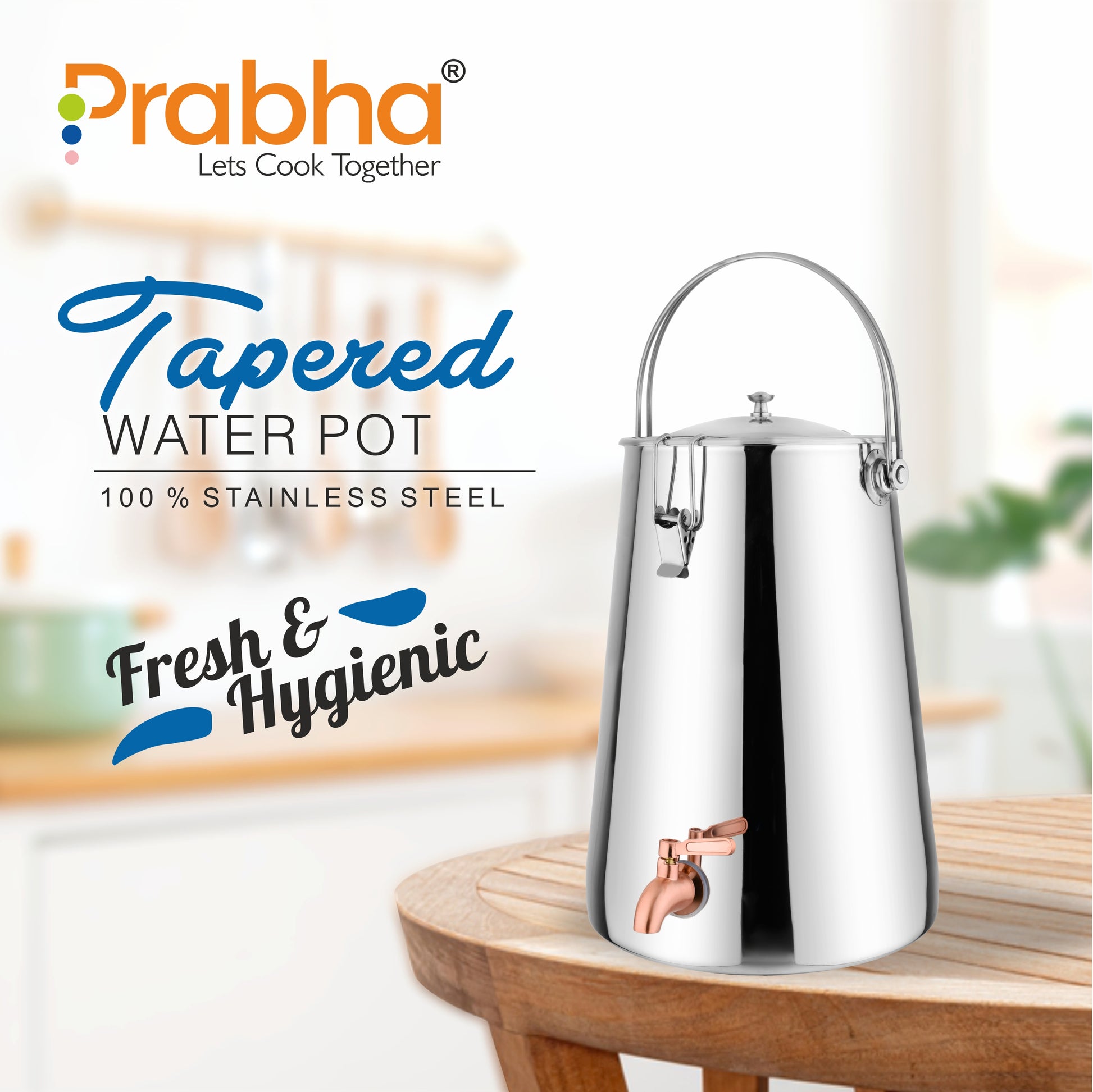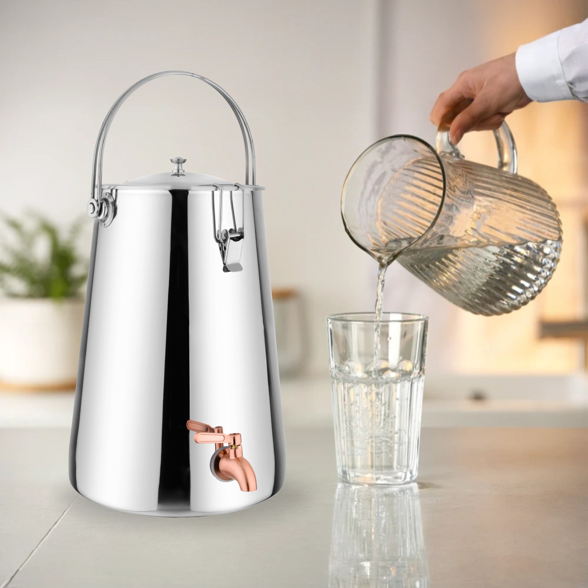 Prabha Water Container 10 Liters with Tap | Water Jug for Kitchen Storage | Stainless Steel Water Tank/Water Pot for Drinking | Handi Steel Matk Dispenser Tampered (Silver) (10 LTR)