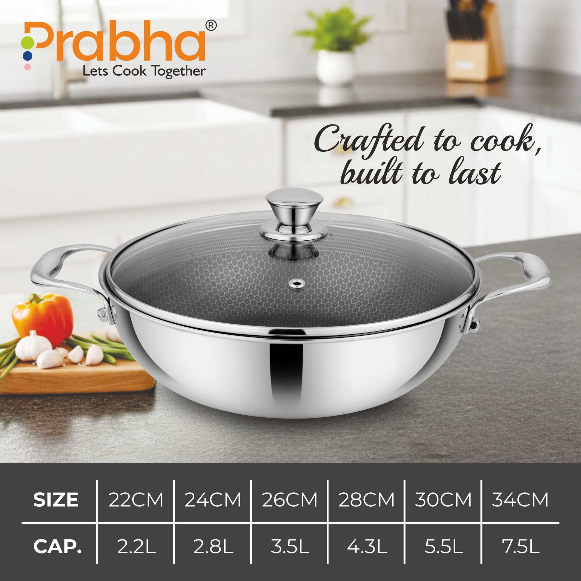 Experience the art of cooking with the Tri-ply Hexa Cube Kadhai with Lid. Unleash your creativity, elevate your dishes, and embrace the future of culinary excellence. With a range of sizes to choose from, this kadhai is your gateway to exceptional cooking adventures.