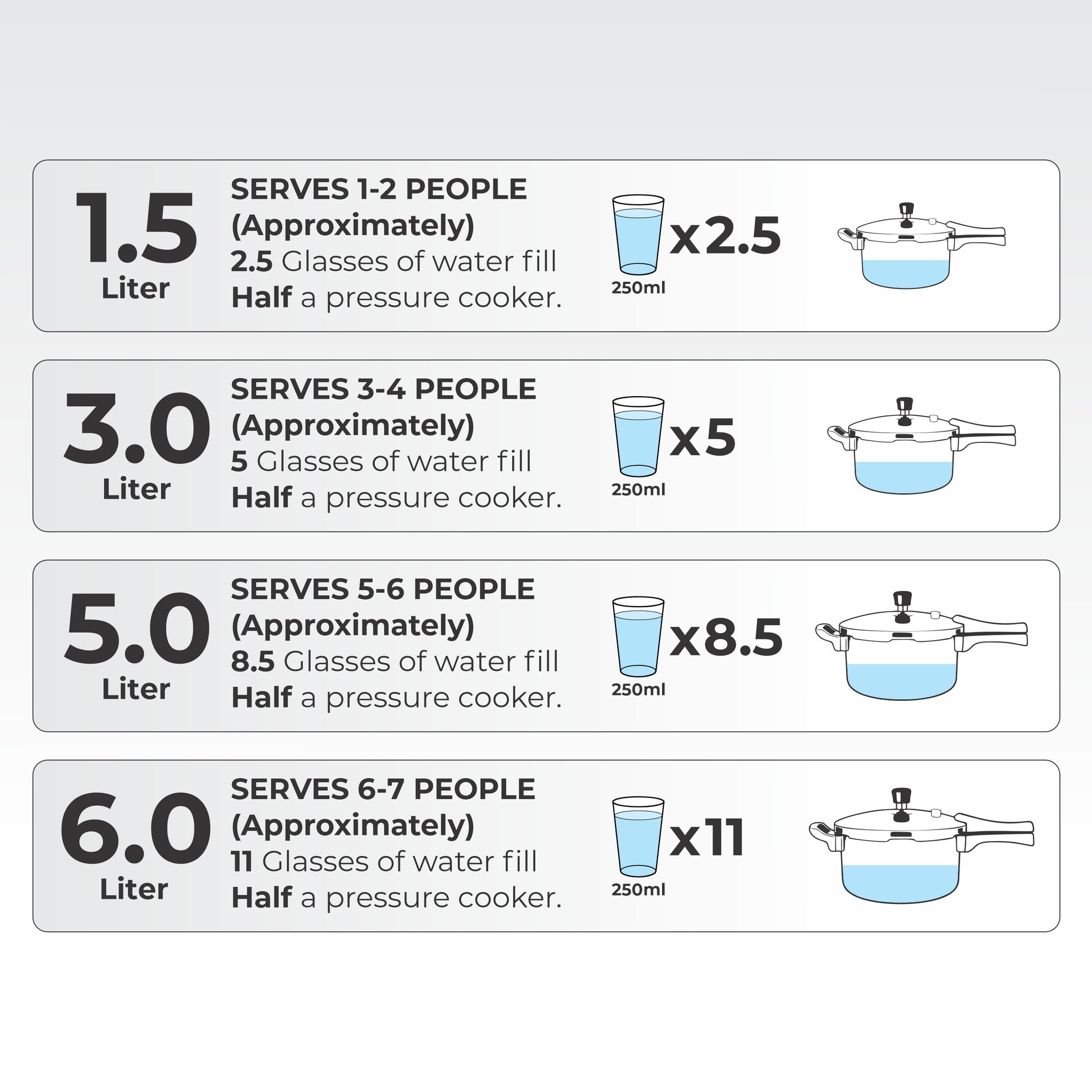 - Capacity: 1.5Ltr, 3Ltr, 5Ltr, 6Ltr