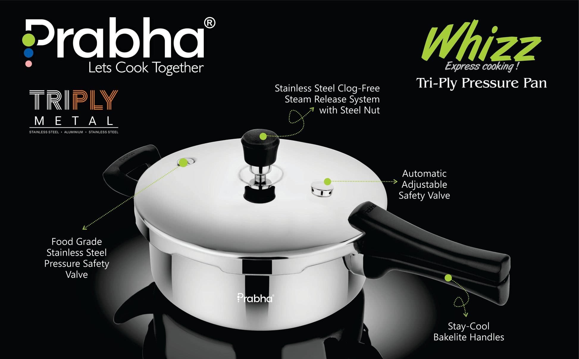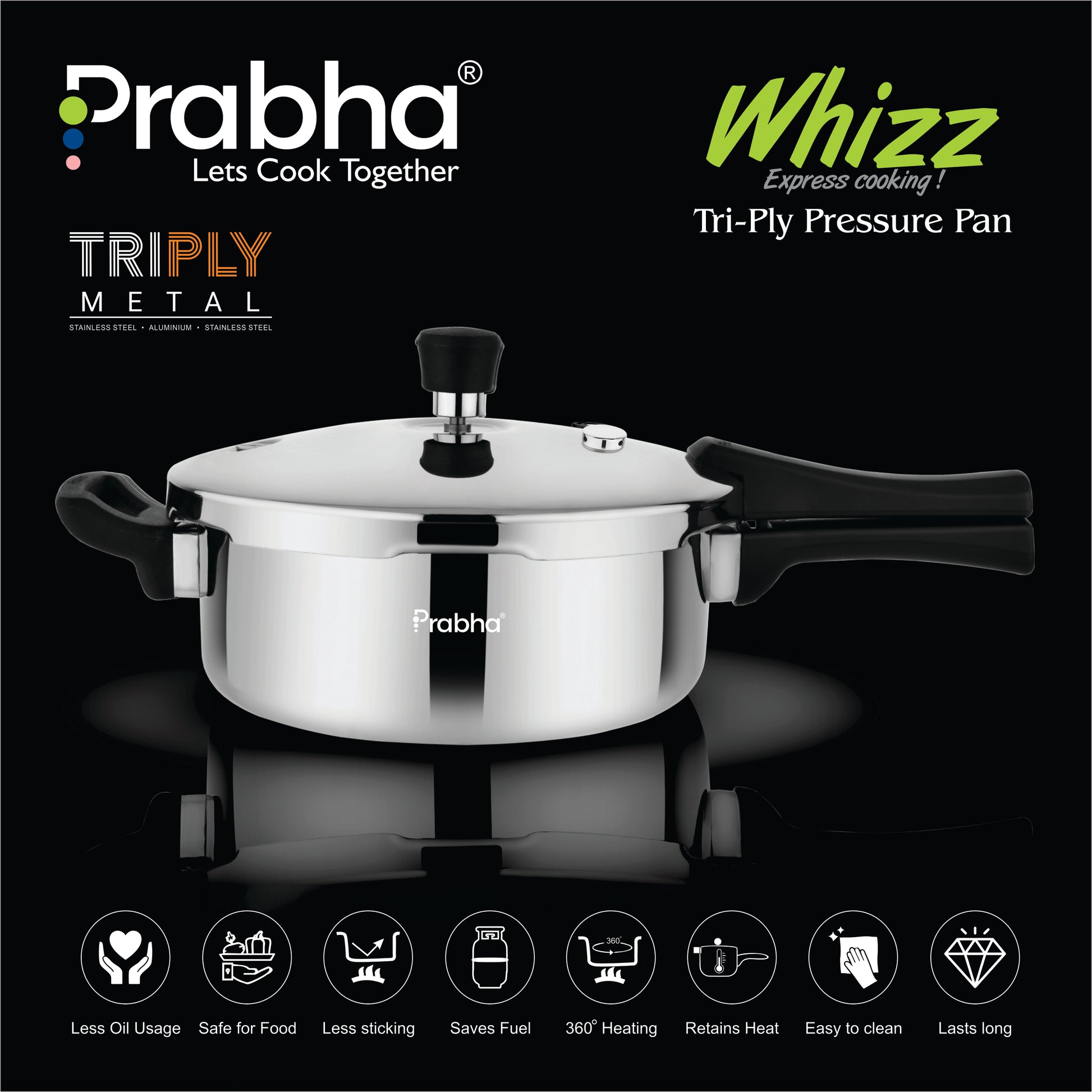 Sleek and Modern Design: The Triply Whizz Pressure Pan boasts a sleek and modern design that will complement any kitchen decor. It's as stylish as it is functional, making it a perfect addition to your culinary arsenal.